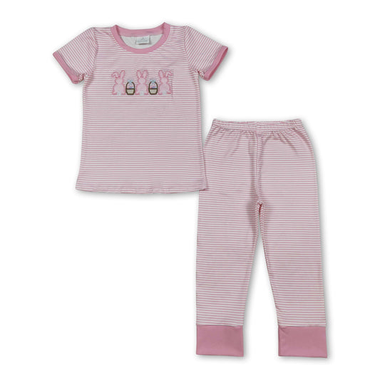 Pink stripe rabbit eggs top pants girls Easter pajamas