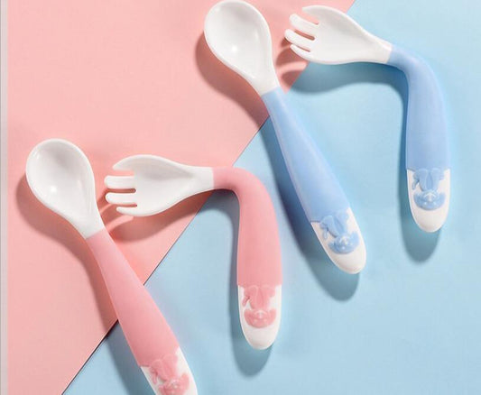 1 Set Children Kids Tableware Temperature Silicone Soft Spoon Fork Cutlery Feeding Dish Infant Boys and Girls Unique Baby Feeding Tool