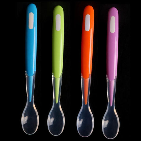 1pcs Baby Spoon Feeder Flatware New Safety Baby Learning Dinnerware Temperature Sensing Baby Feeding Spoon Soft Silicone For Boys And Girls