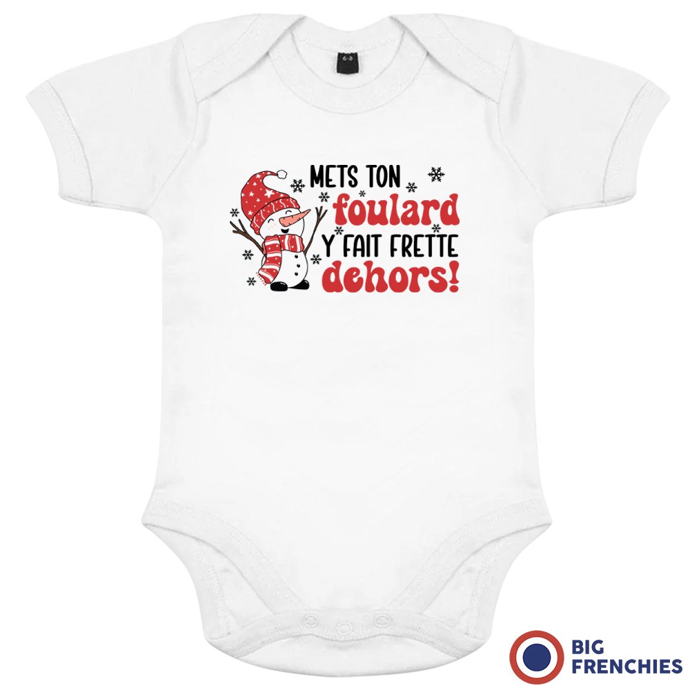 Mets Ton Foulard y Fait Frette Dehors! Christmas Organic Cotton Baby Onesie