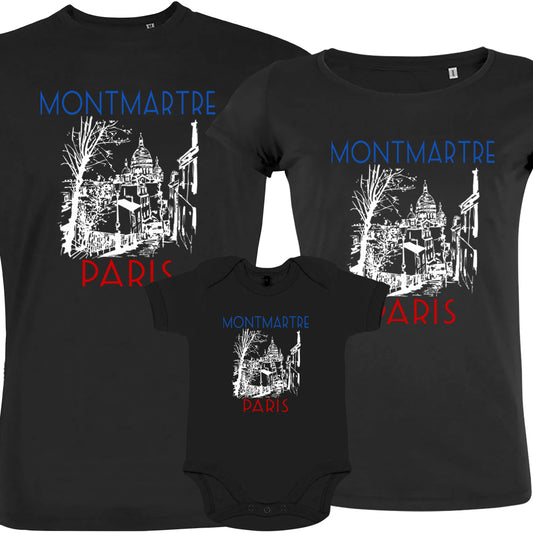 Paris Montmartre Matching Family Organic Cotton Black Tees (Set of 3)