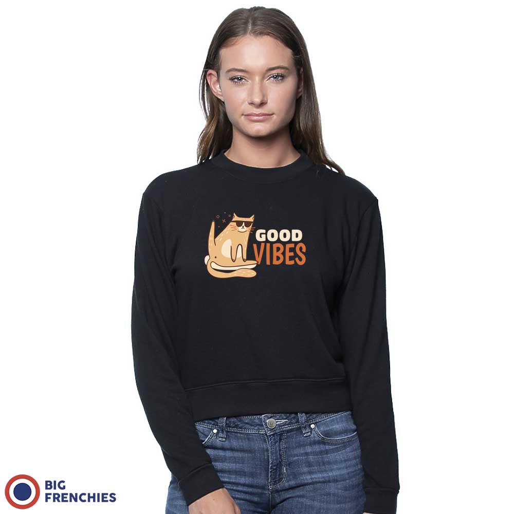 Good Vibes Cat Women's Organic Cotton RPET French Terry Crew