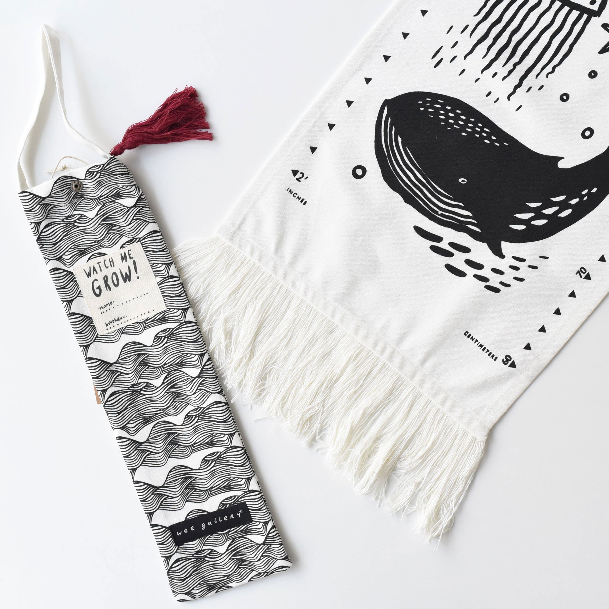 The Ocean Growth Chart with whale, jellyfish, seahorses, octopus, sea turtle, and fish, makes a great birthday present or baby shower gift for a child or grandchild. Not only does it track a little one's growth over the years, it also doubles as a unisex decoration suitable for both boys and girls rooms.