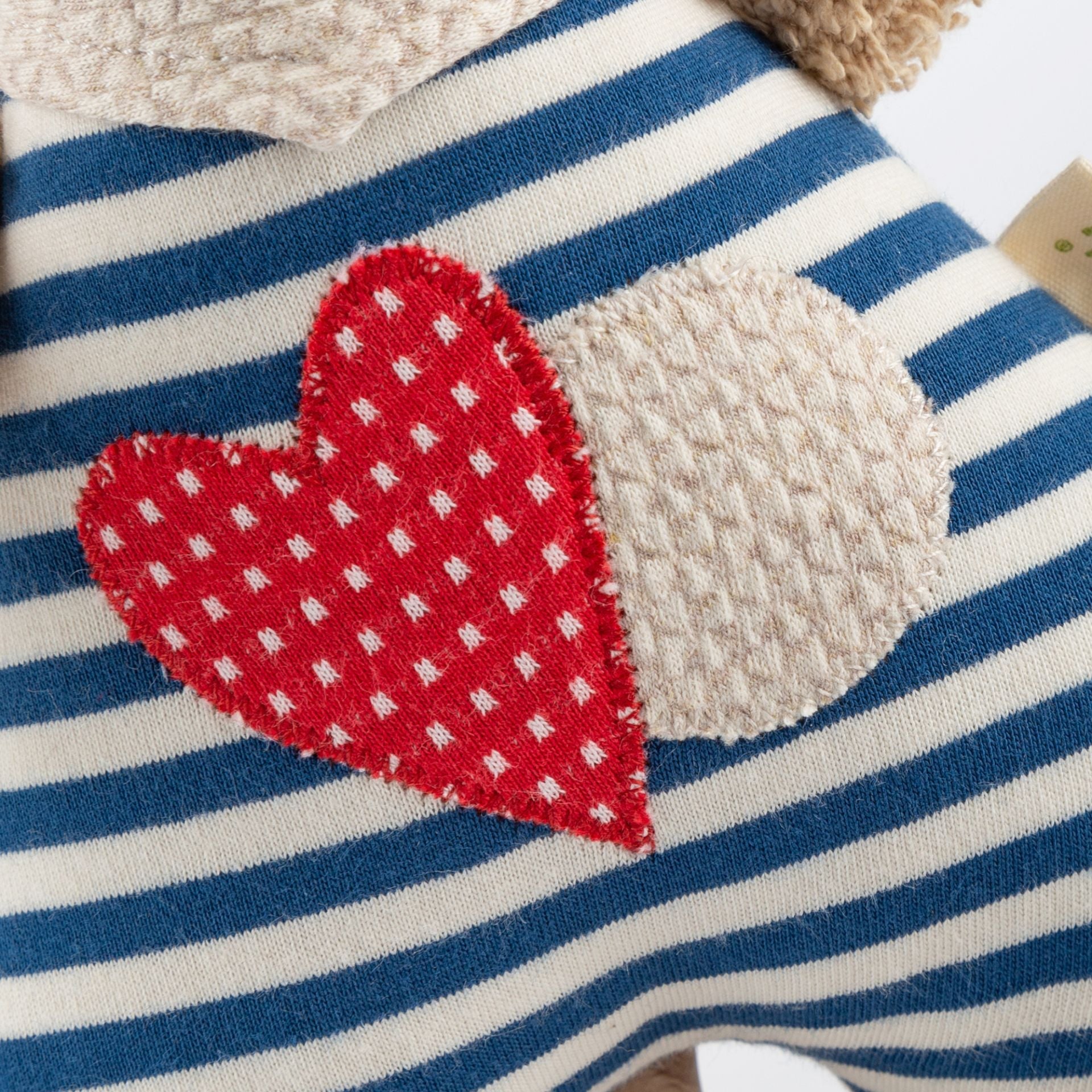 This organic puppy musical toy keeps the little ones entertained and soothes them gently to sleep. The music box can be removed in order to machine-wash the little dog (in the wool cycle, please!), change the tune, or turn it into a cuddles-only version.