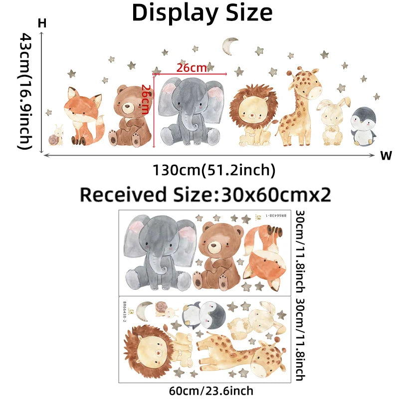 Watercolor Cartoon Animals Wall Stickers